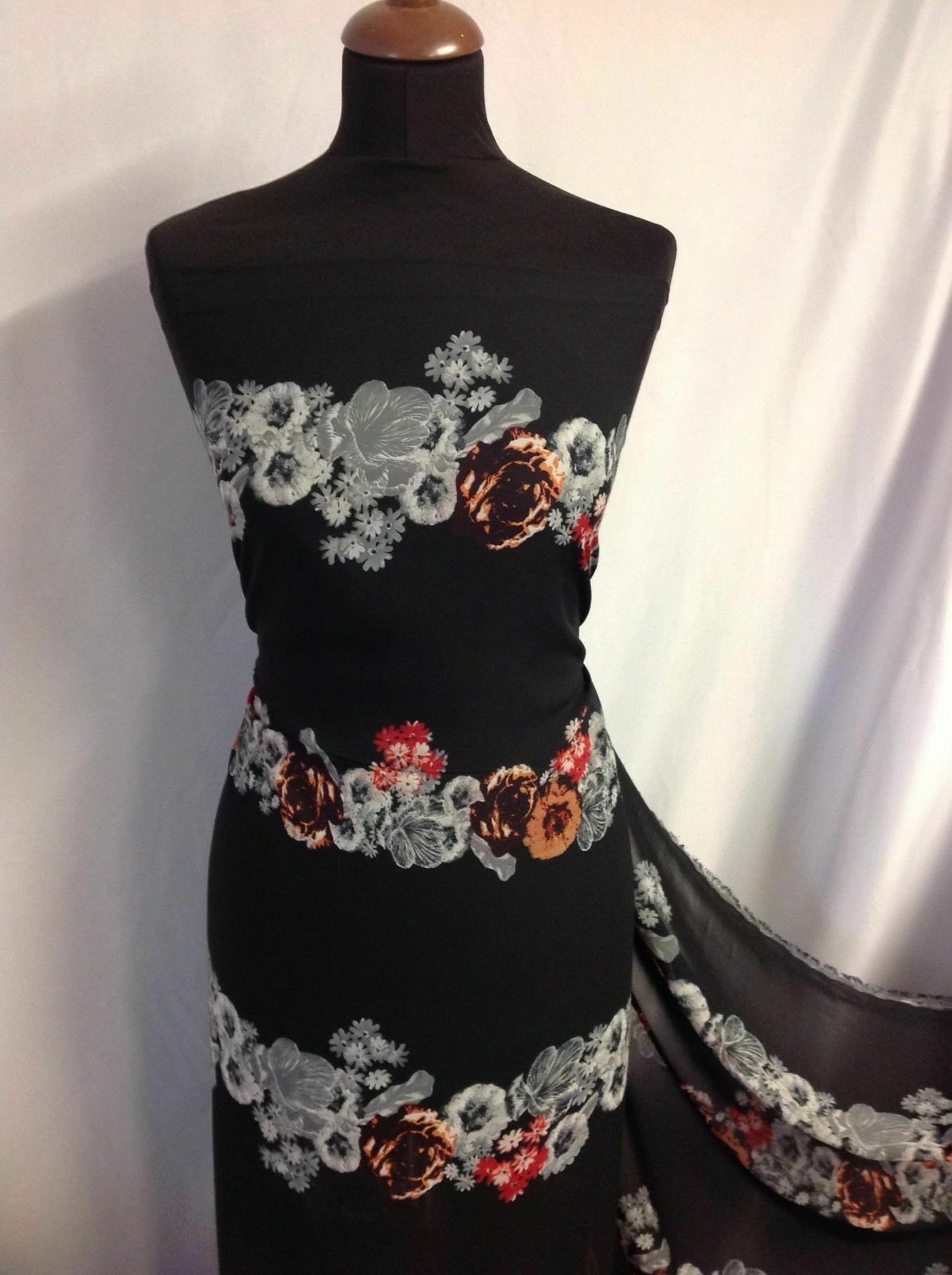NEW BEAUTIFUL DESIGNER CHIFFON FLORAL PRINT FABRIC 61" 157 CM DRESS PARIS