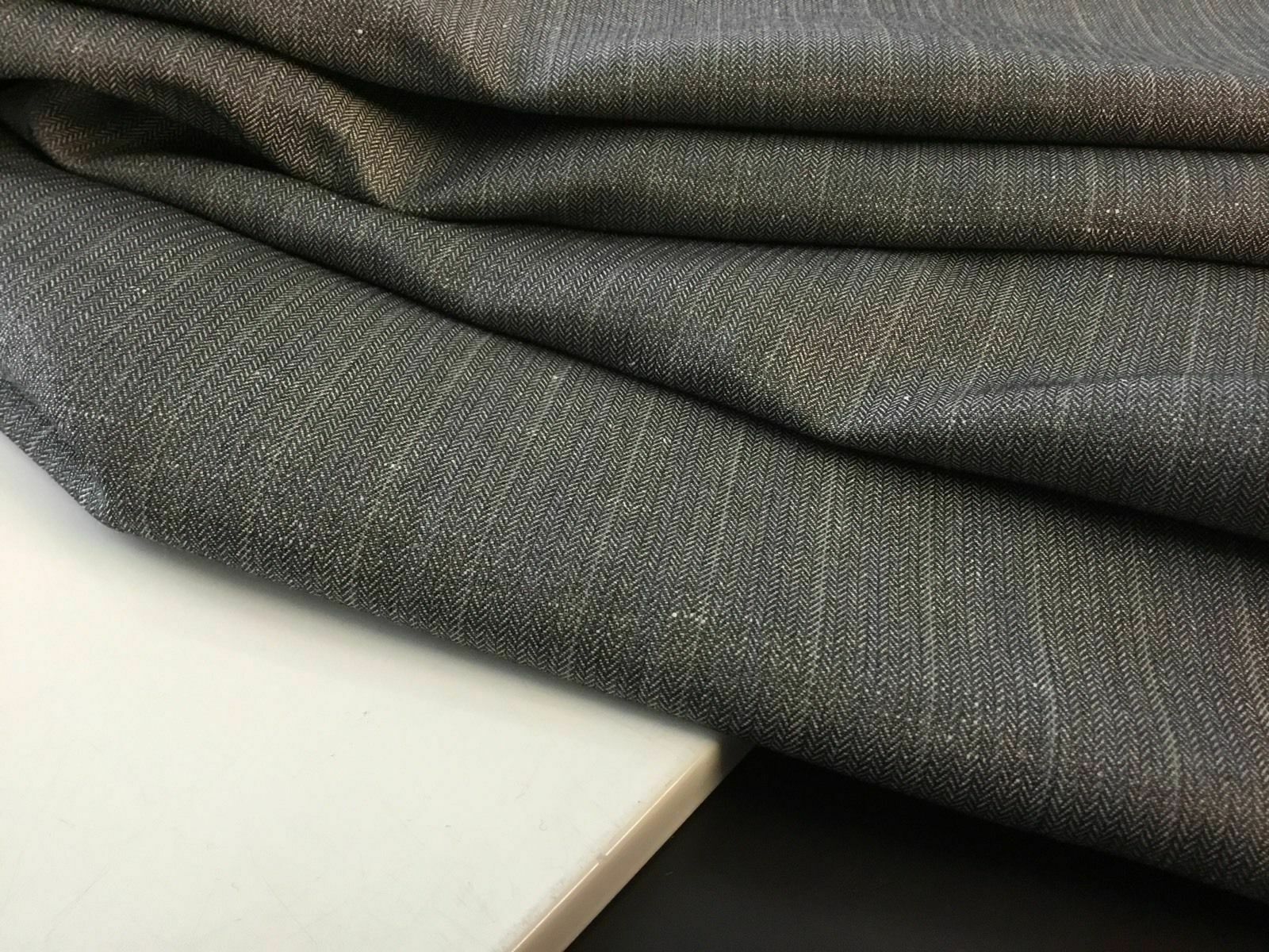 NEW DESIGNER GREY COLOUR LINEN HERRINGBONE SUITING FABRIC 60" 153 CM GARMENT