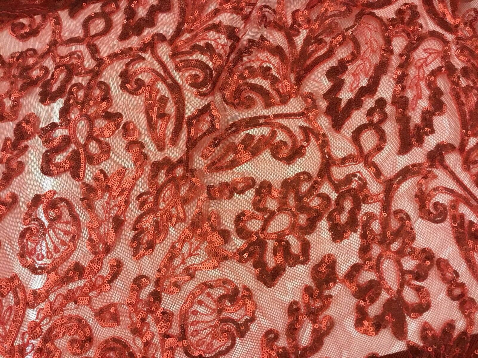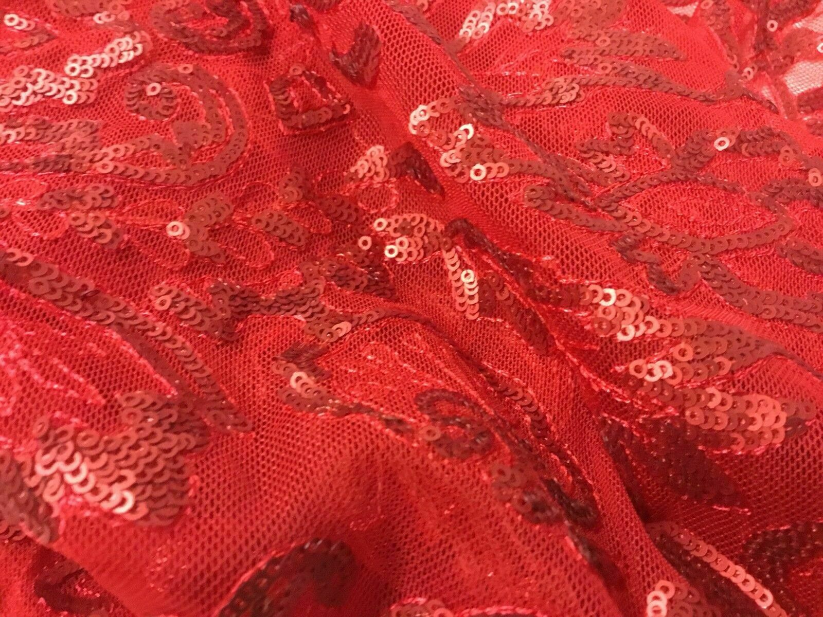 NEW Designer High Class Red Sequins Corded Border Scallop Lace Fabric 45’’ 116cm