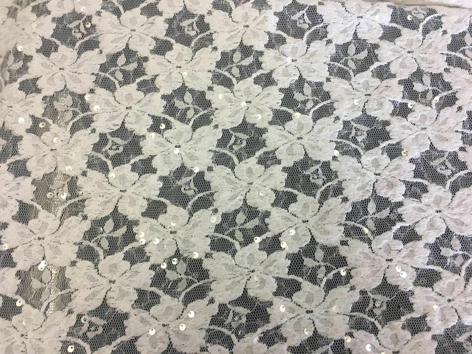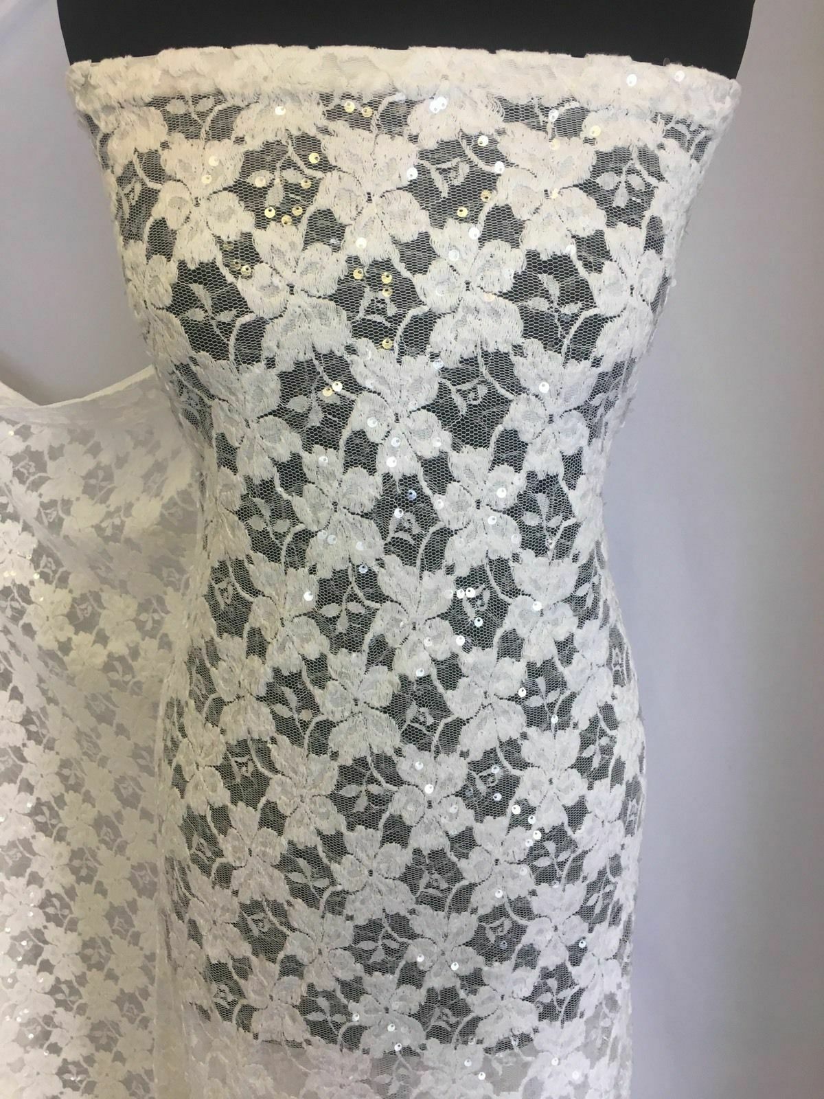 NEW Designer Ivory Embroidery Sequins Floral Stretch Lace Fabric 59" 152 cm Width 59" (152 cm) £ PER HALF METRE Please add me to your favourite seller list!!!! Please Check my Shop which consist of the Fabrics, Wool, Silk, Viscose, Satin, Cotton and Fabulous and Exquisite Fabrics. Will provide proof off Receipt, for Postage and Packaging. Will NOT take responsibility for Lost, Stolen or Damages. HAPPY BUYING!!!!!!!!!!!!!!!!!!!!!