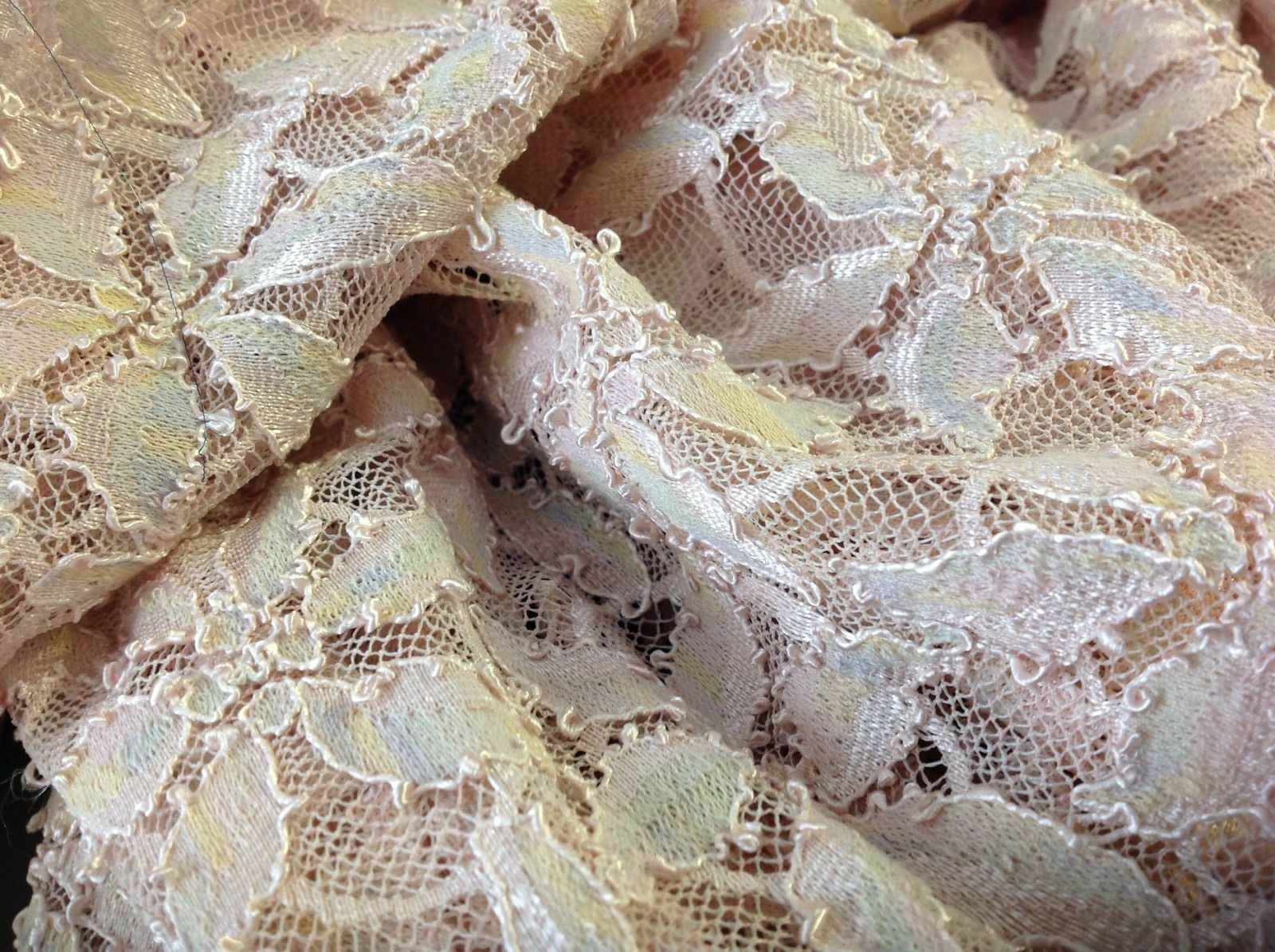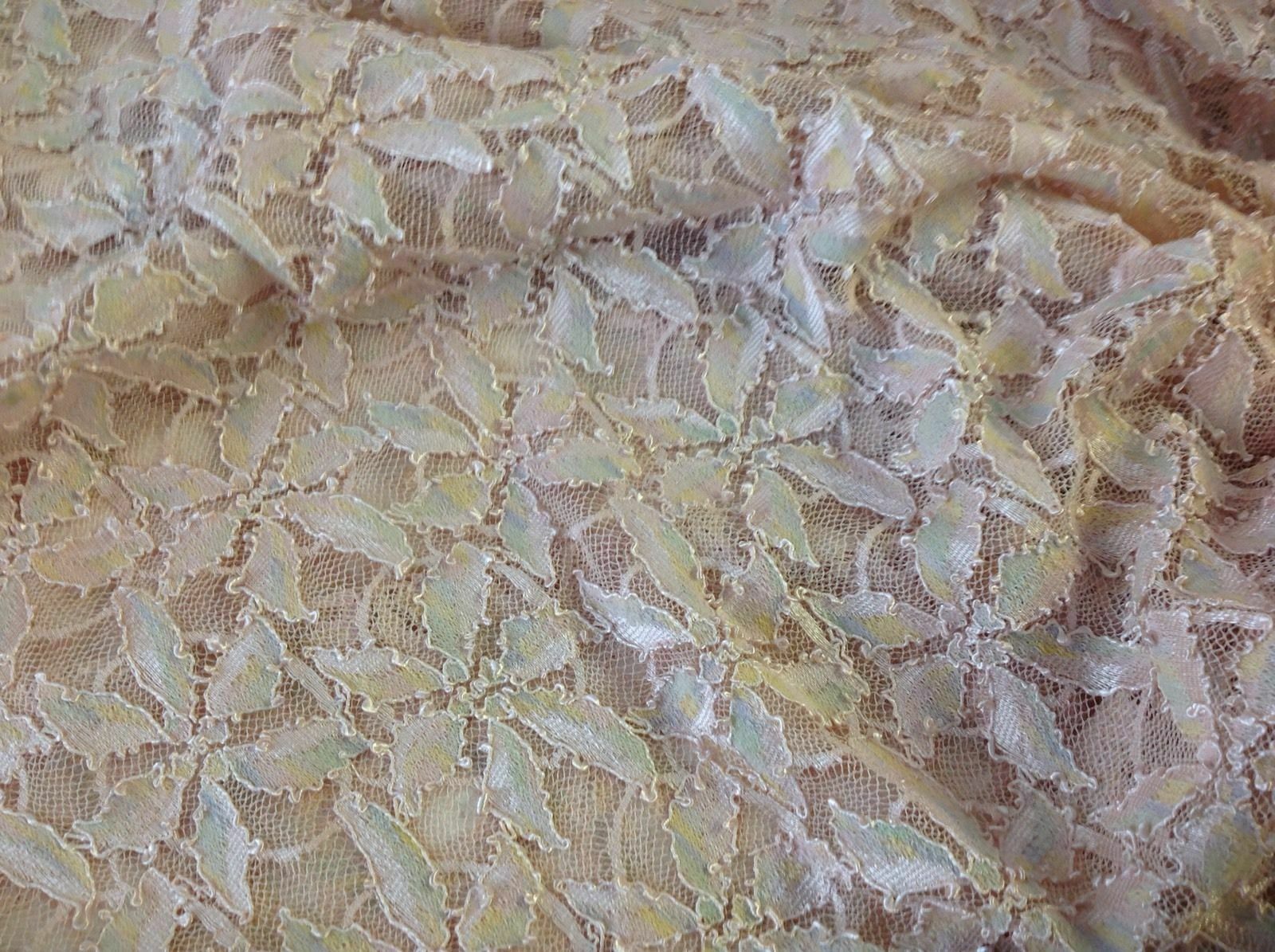 NEW Designer Nude Lace With Multicolored Flowers Stretch Lace Fabric Gorgeous