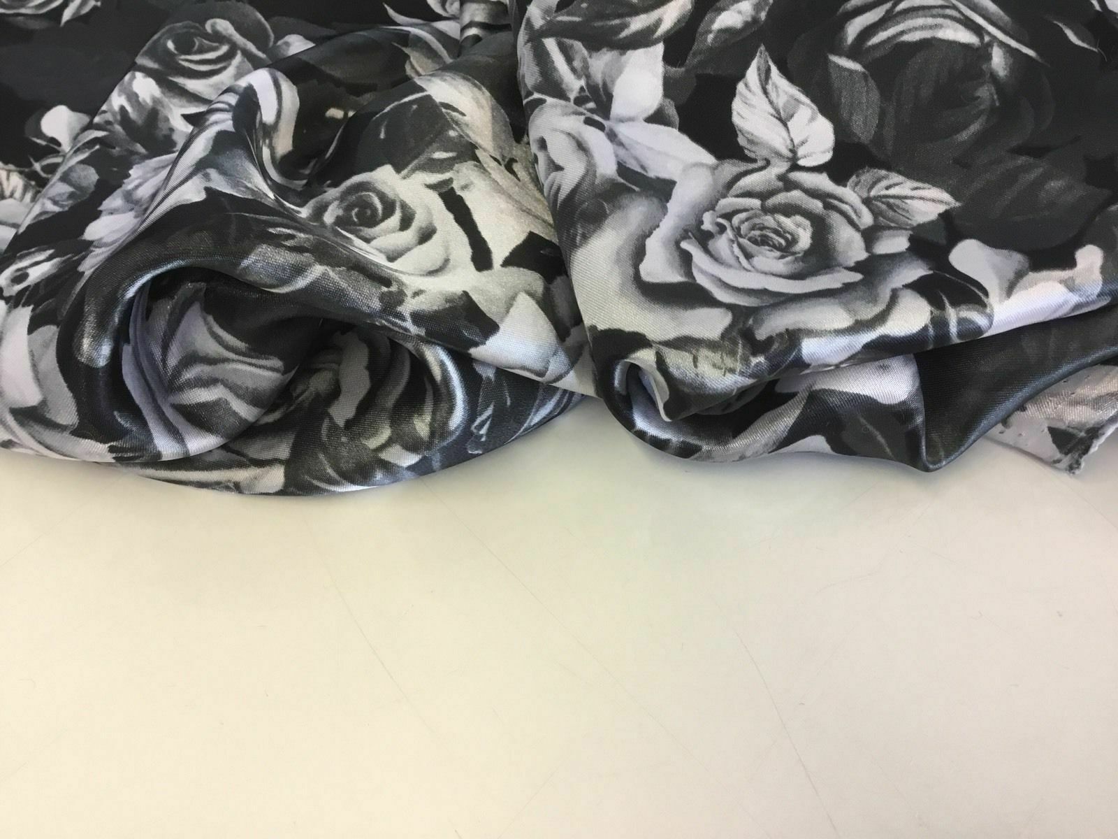 NEW DESIGNER SILKY SOFT POLY SATIN ROSE LEAF PRINT FABRIC 58" 149 CM DRESS CRAFT
