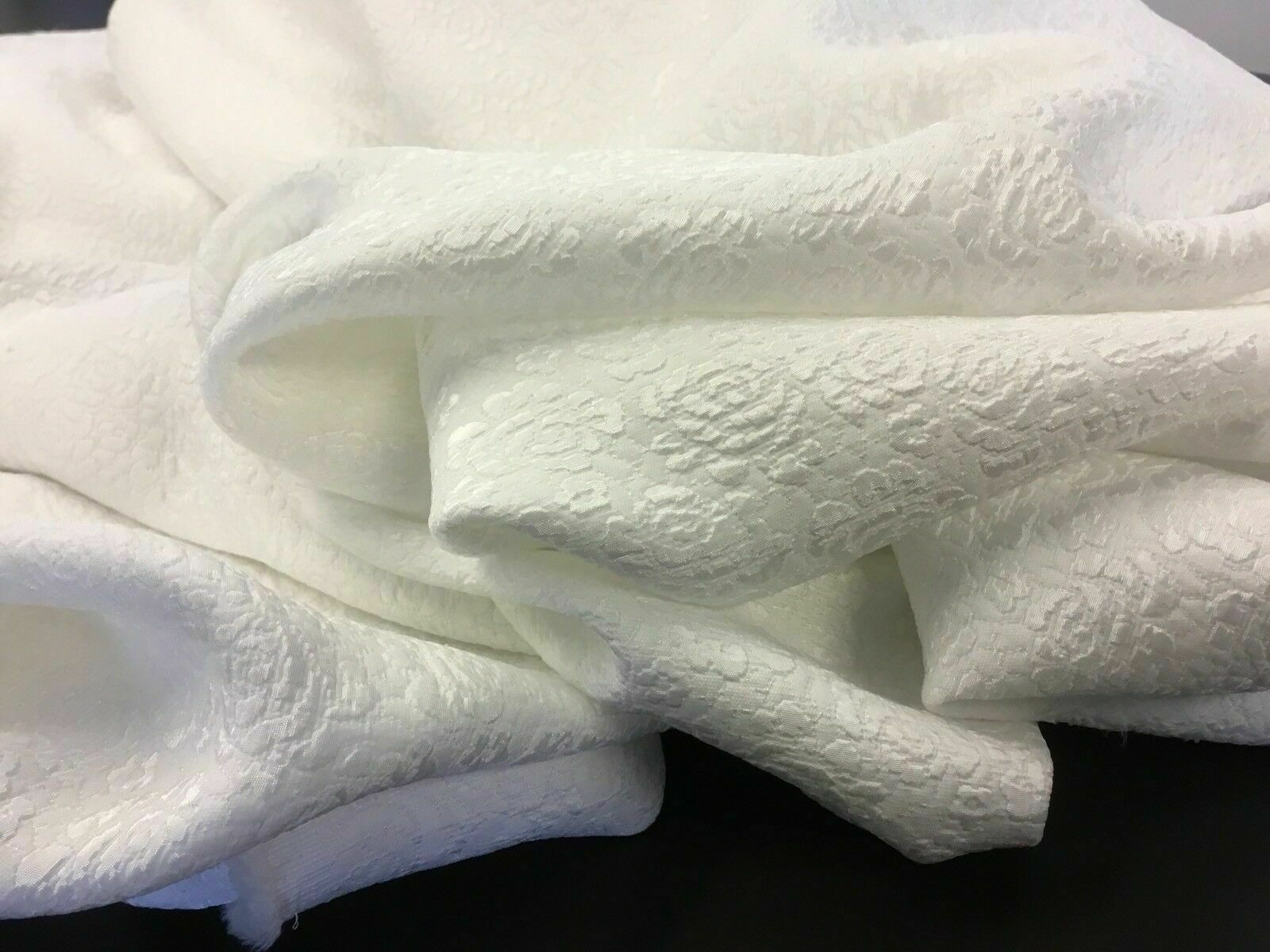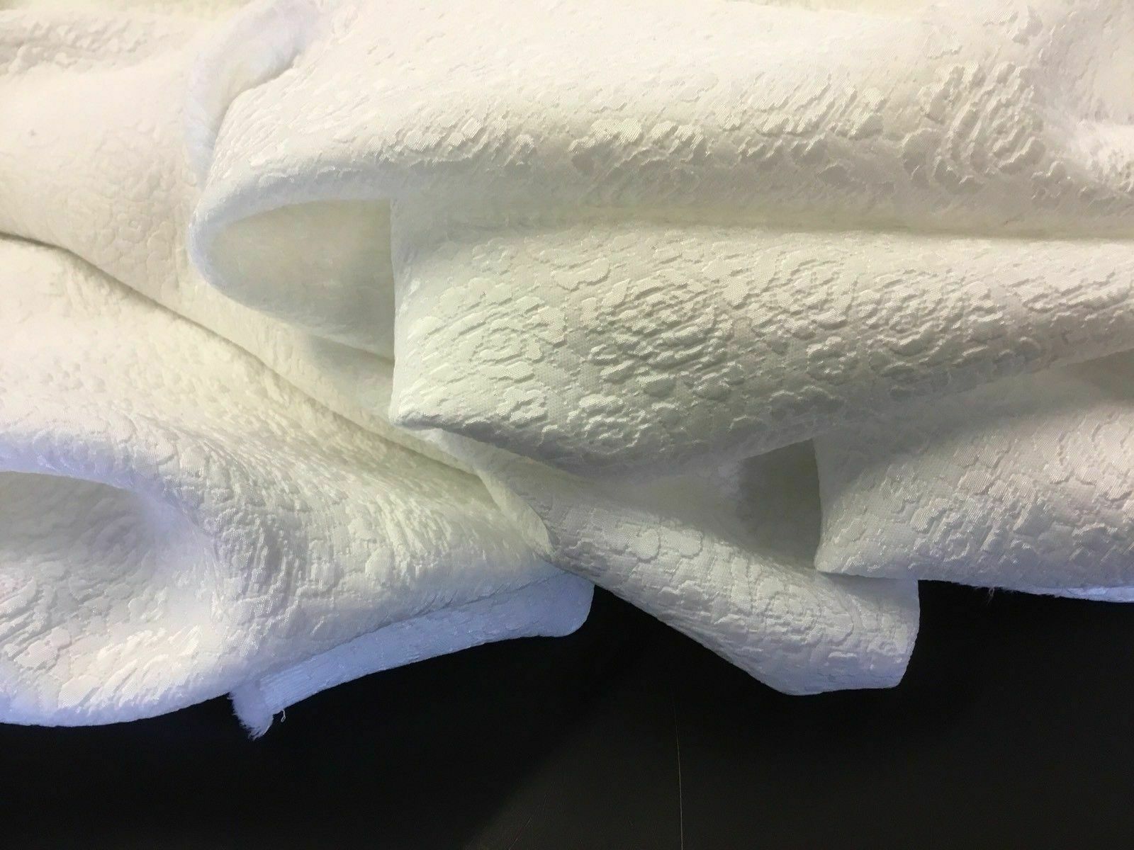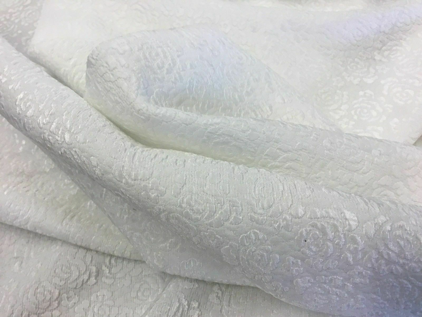 NEW GORGEOUS WHITE FLORAL JACQUARD CLOQUE FABRIC 53’’ 136 cm Bridal Wedding