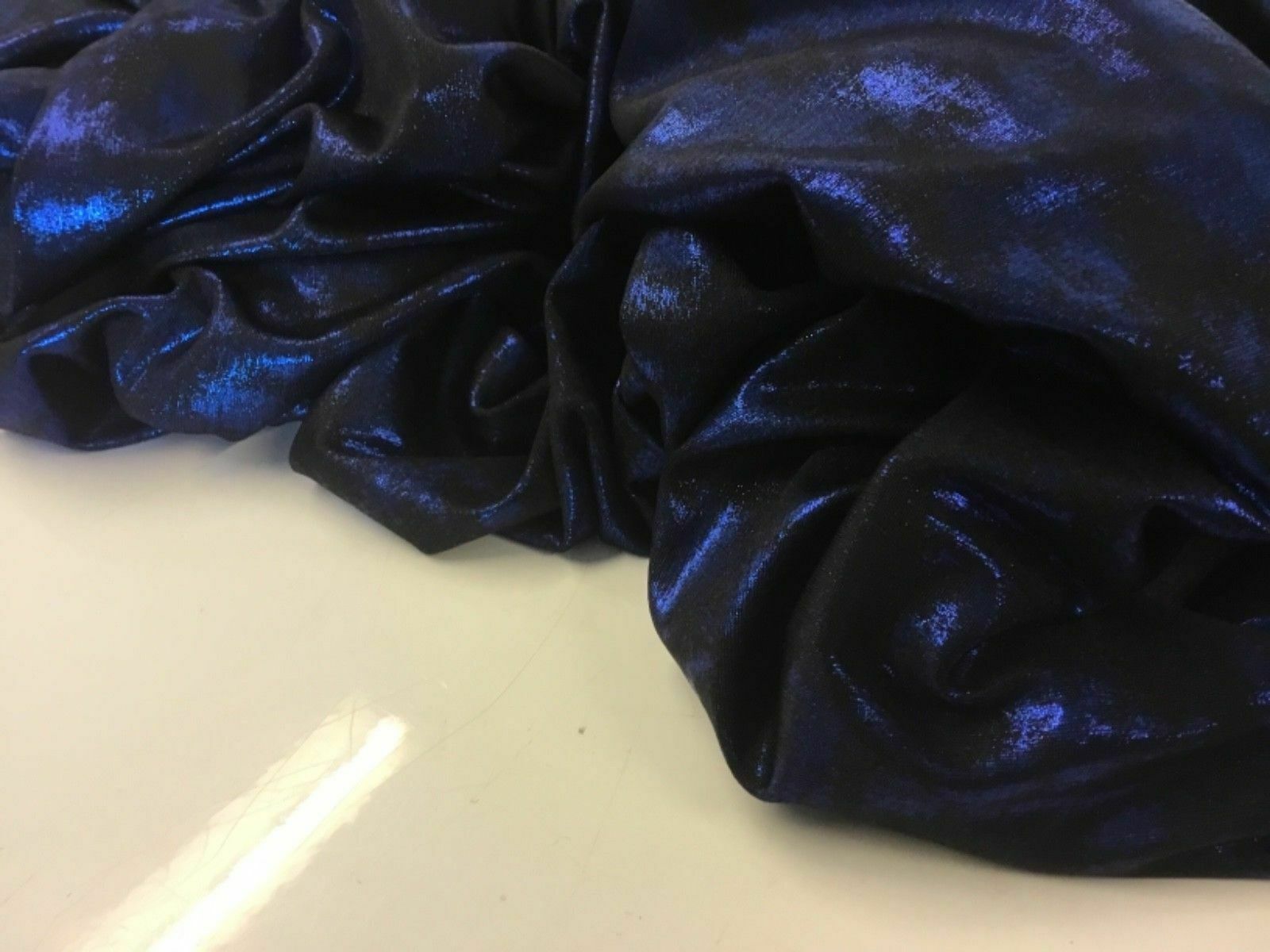NEW HIGH CLASS DESIGNER SHINY LIGHTENING BLUE TIE DIE STRETCH LAME JERSEY FABRIC