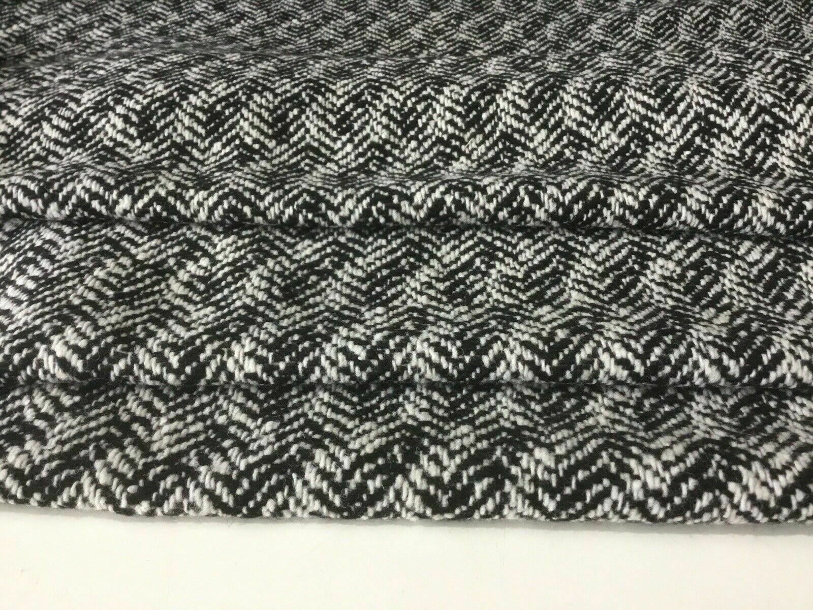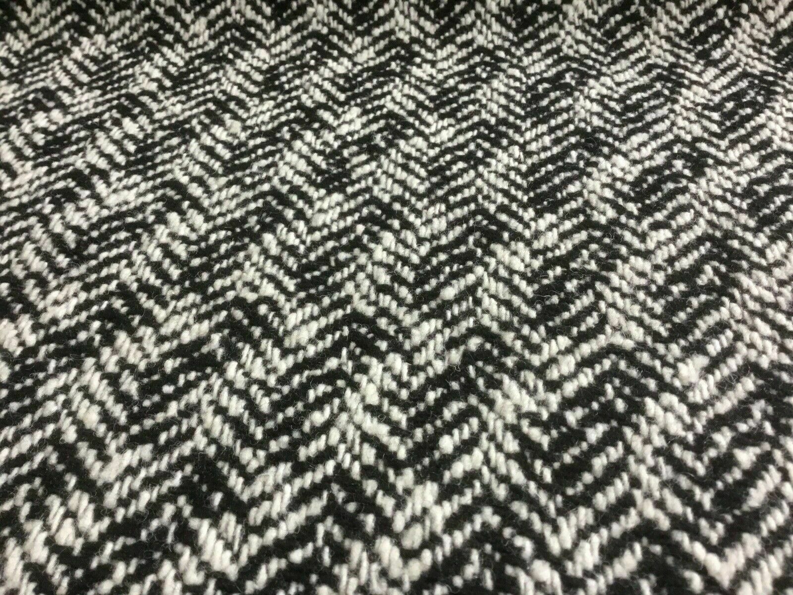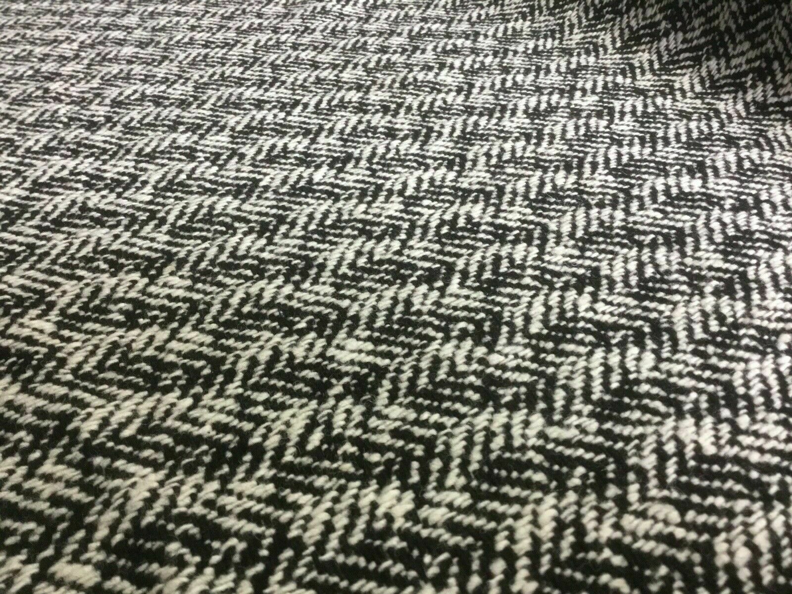 New High Class Heavy White Black Herringbone Wool Boucle Fabric 59" 151 cm