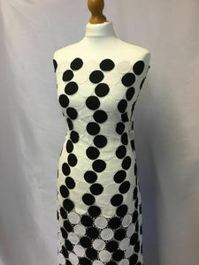 NEW Designer Chained Eyelash Black White Polka Dot Spots Lace Fabric (SECONDS)