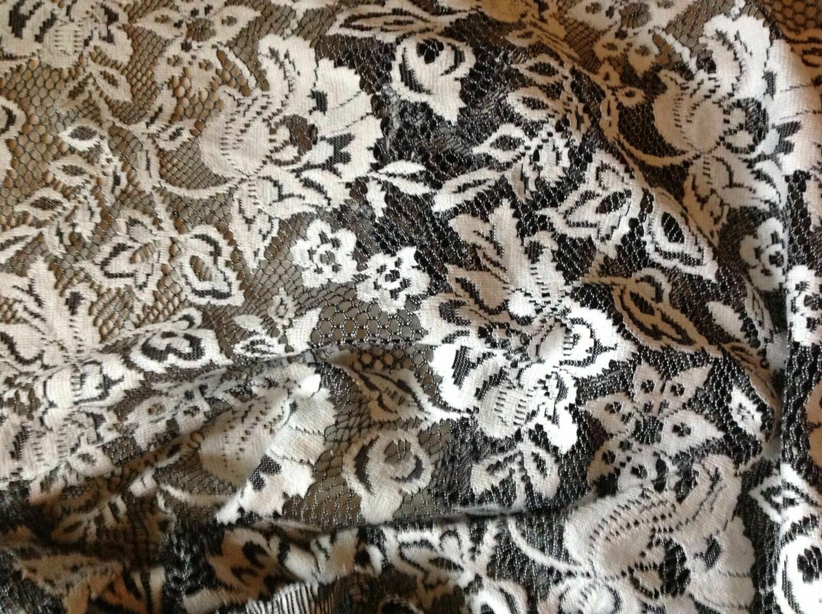 NEW Designer Ivory Black Stretch Floral Lace Fabric 62" 160 cm Rachael Dress