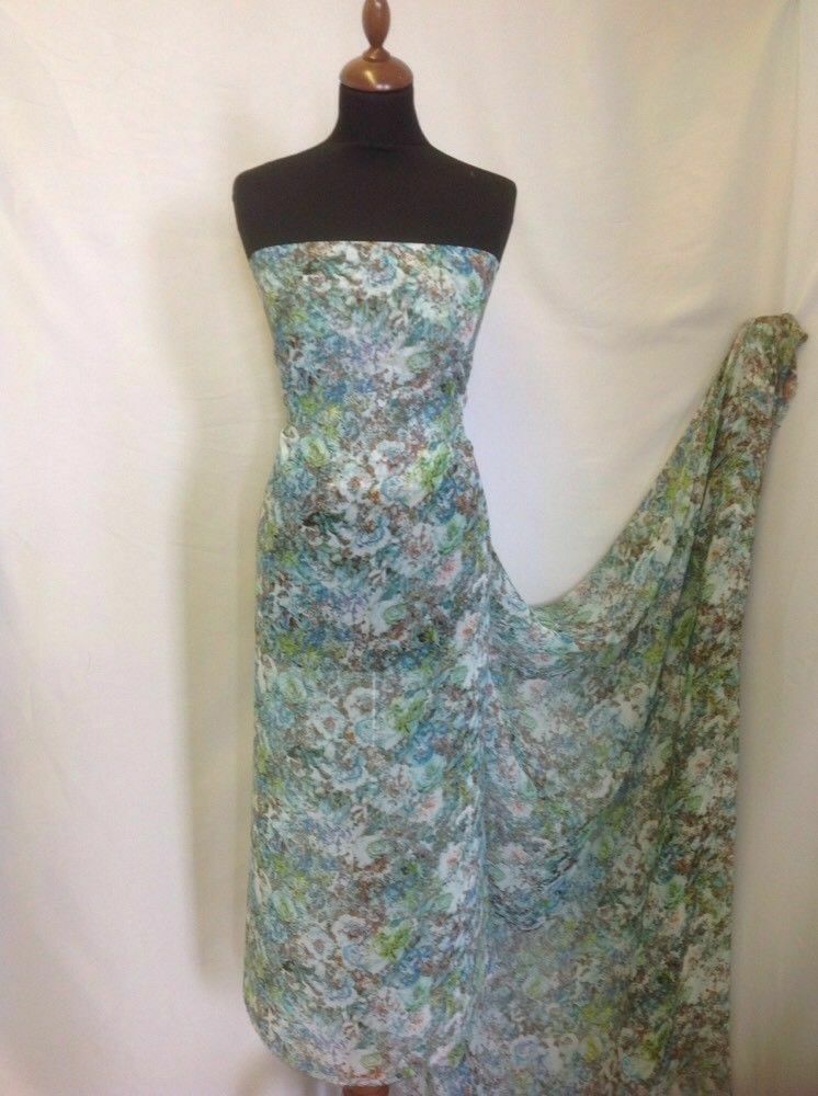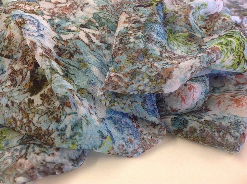NEW Designer Multicolored Chiffon Leaf Floral Print Fabric 57" Dress Cloth Sew