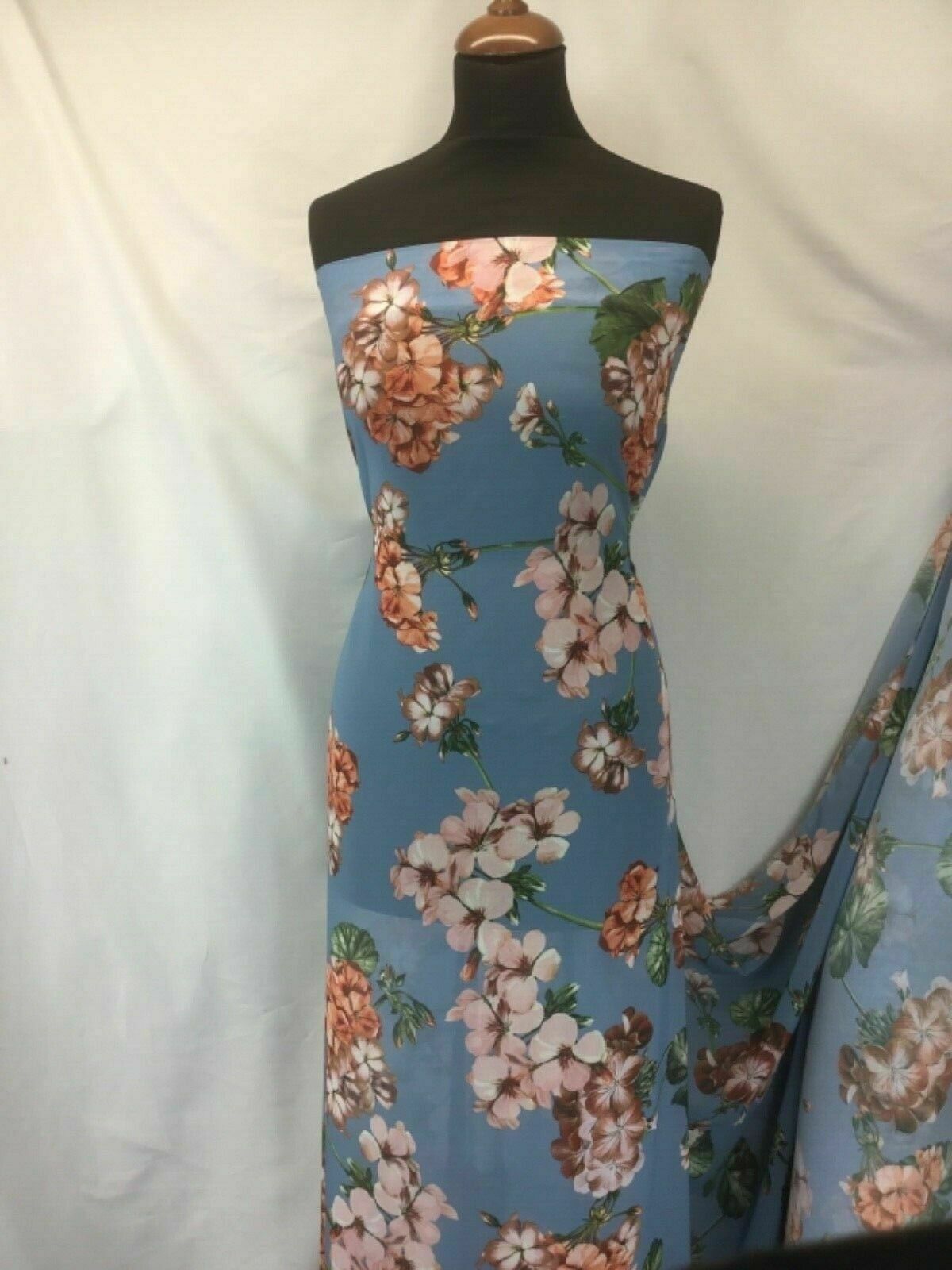 NEW HIGH CLASS DESIGNER MULTICOLOURED CHIFFON FLORAL PRINT FABRIC 59" 151 CM