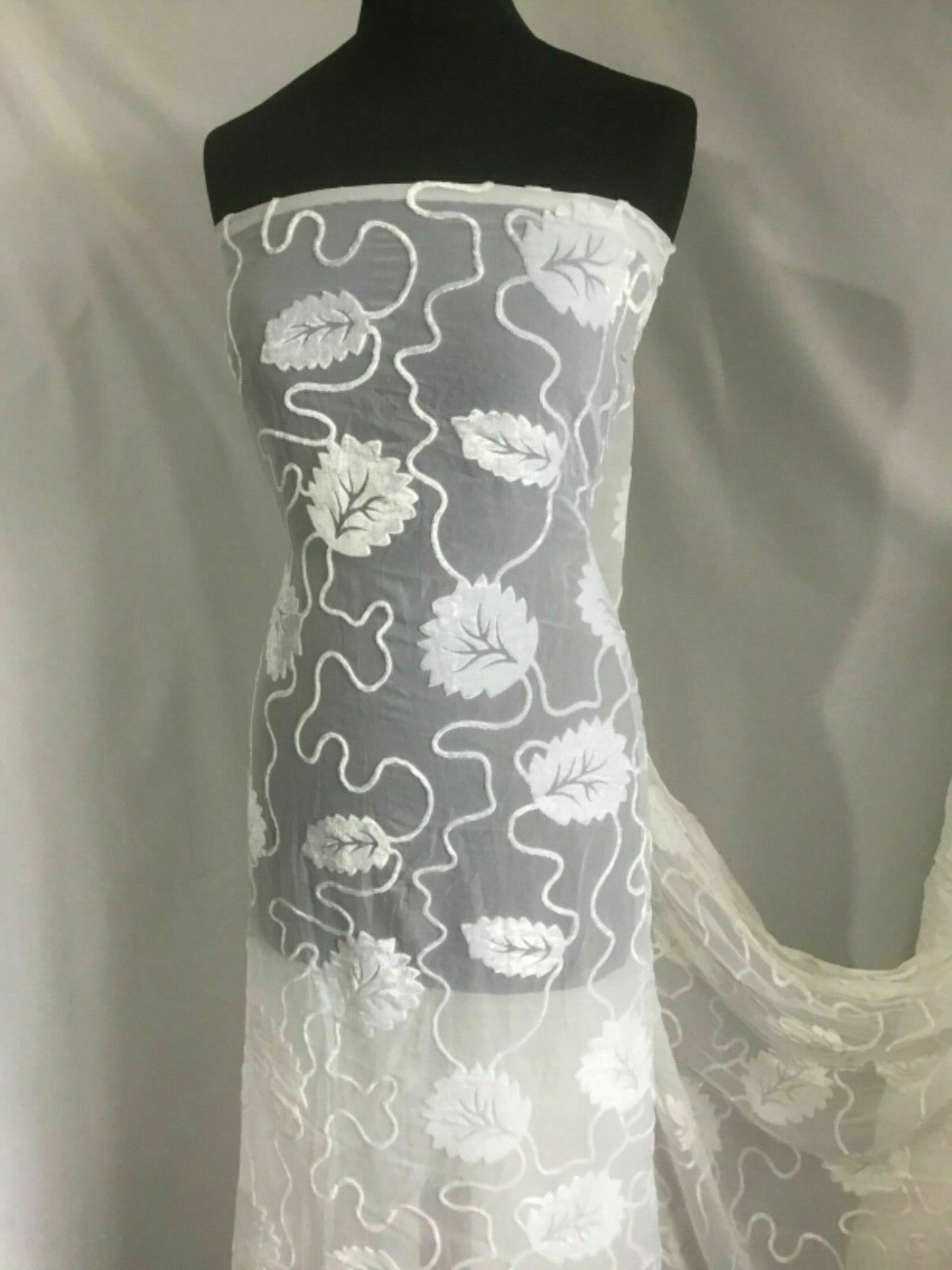 NEW High Class Designer White Ivory Bridal Chiffon Floral Velvet Burnout Fabric