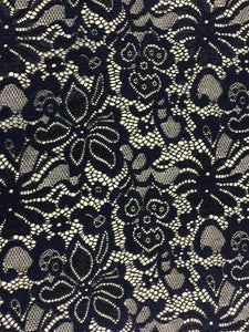 NEW High Class Designer Navy Stretch Net Floral Lace Scalloped Fabric 59" 151 cm